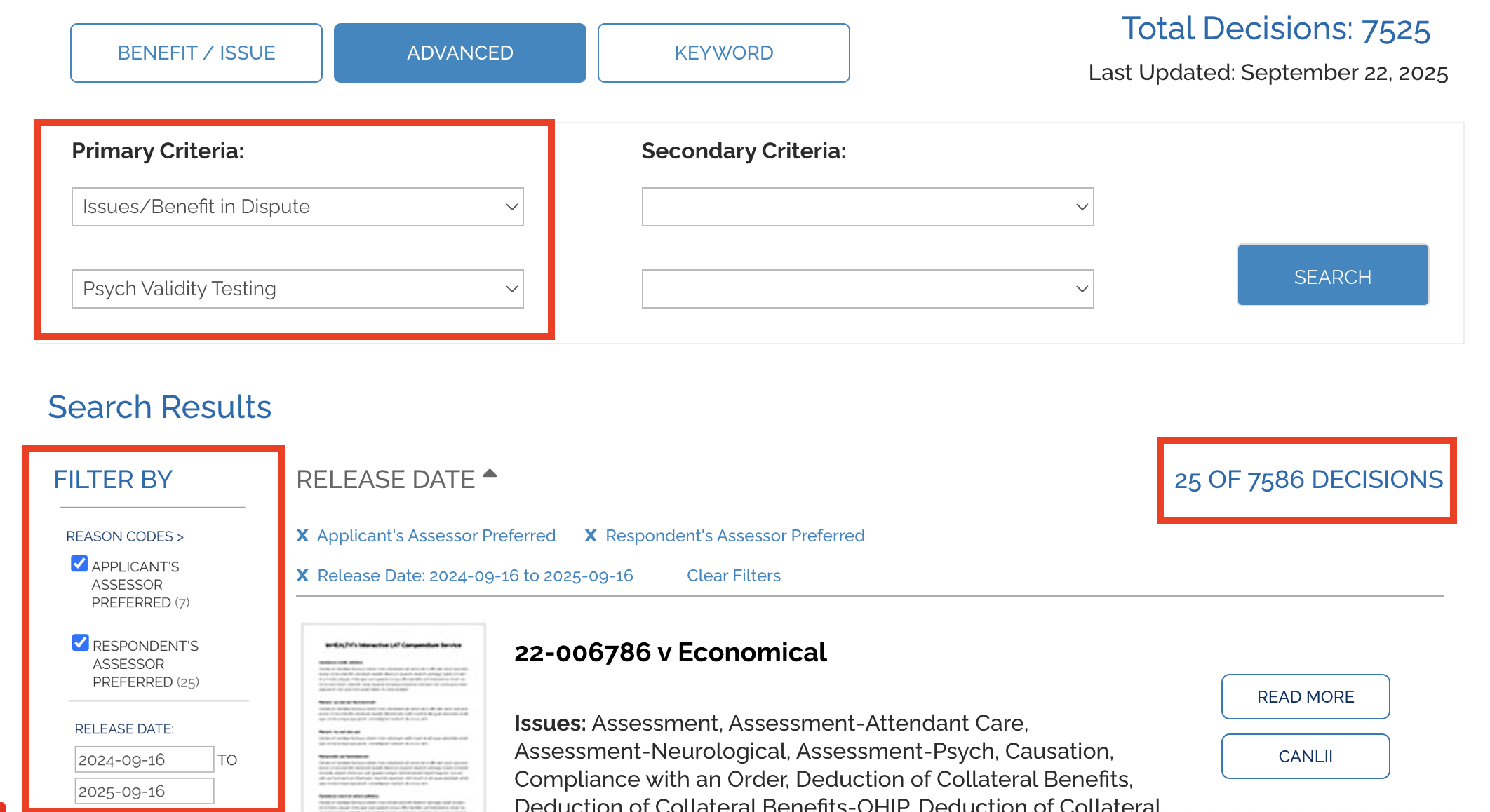 To explore what tends to work, try using our “Favour of Decision: For Applicant” filter. It highlights decisions where claims were successful, so you can see what arguments and evidence have resonated with the LAT.