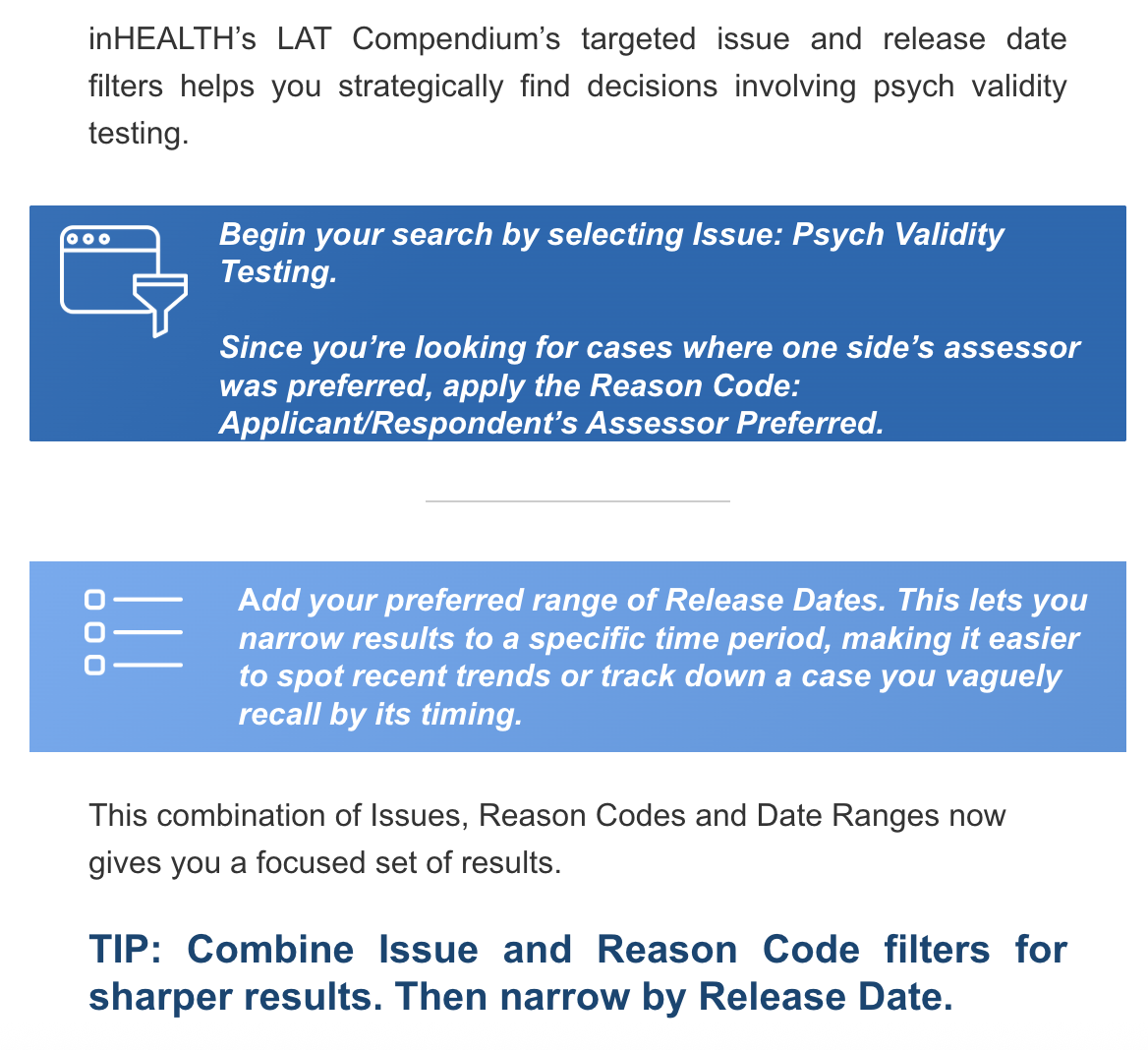 Tuesday Tips are based on research questions from our community of LAT Compendium subscribers. You are not alone! Finding the right case doesn’t have to be a challenge. Let inHEALTH’s Live Chat experts help you find what you need.
