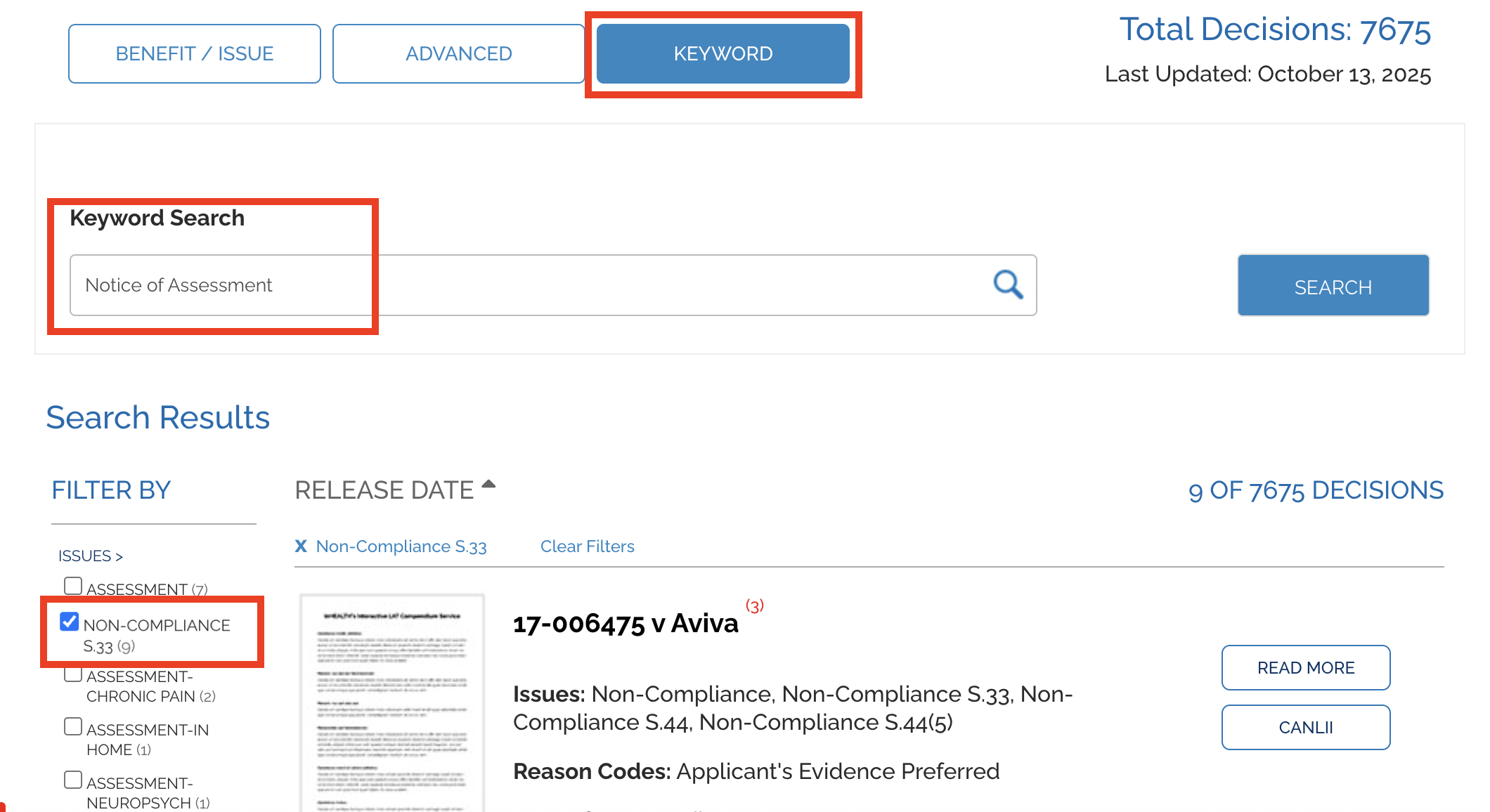 Tip: Use “Keyword Search” to find decisions with key terms and then apply filters to narrow your results